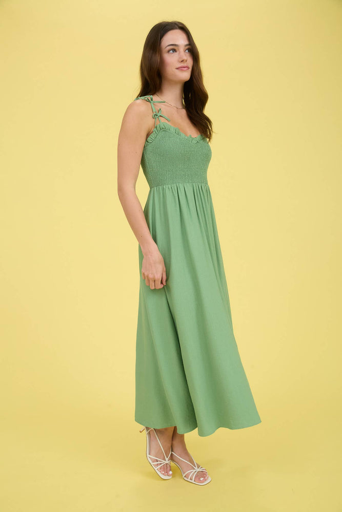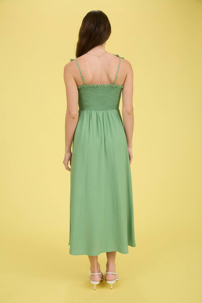 This Sweetheart Bow Midi Dress combines elegance and comfort with its adjustable spaghetti straps and charming bow detail. The ruffle trim adds a playful touch to the flattering A-line silhouette, while the fully lined design ensures a smooth fit. Crafted from a soft blend of rayon and nylon with a polyester lining, this solid midi dress is perfect for any occasion where you want to feel effortlessly stylish.
