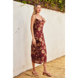 Bronzed Merlot Cowl Neck Midi Slip Dress