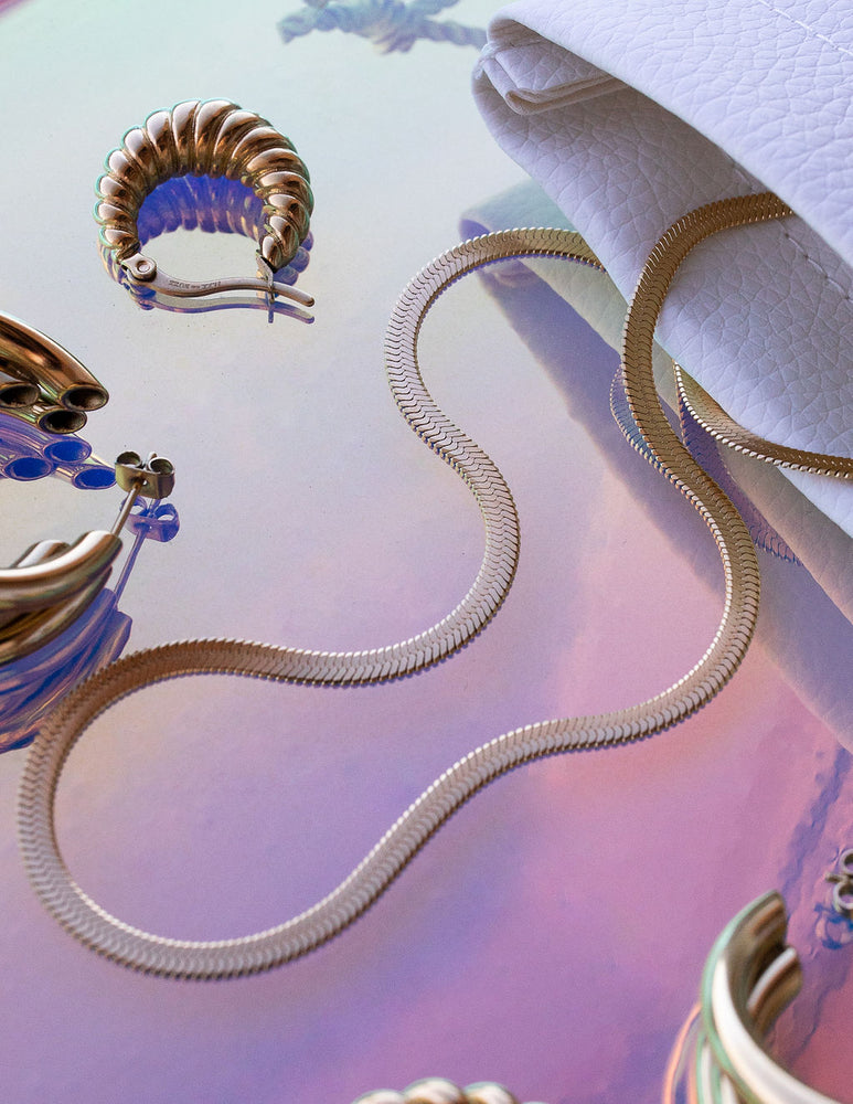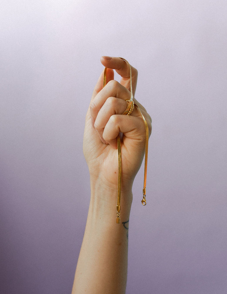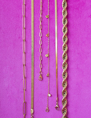 Herringbone chains are the must have staple in your wardrobe! Although it can be worn alone, it shines when layered with other chains. Pairs well with your street style aesthetic or your Monday-Friday work day.